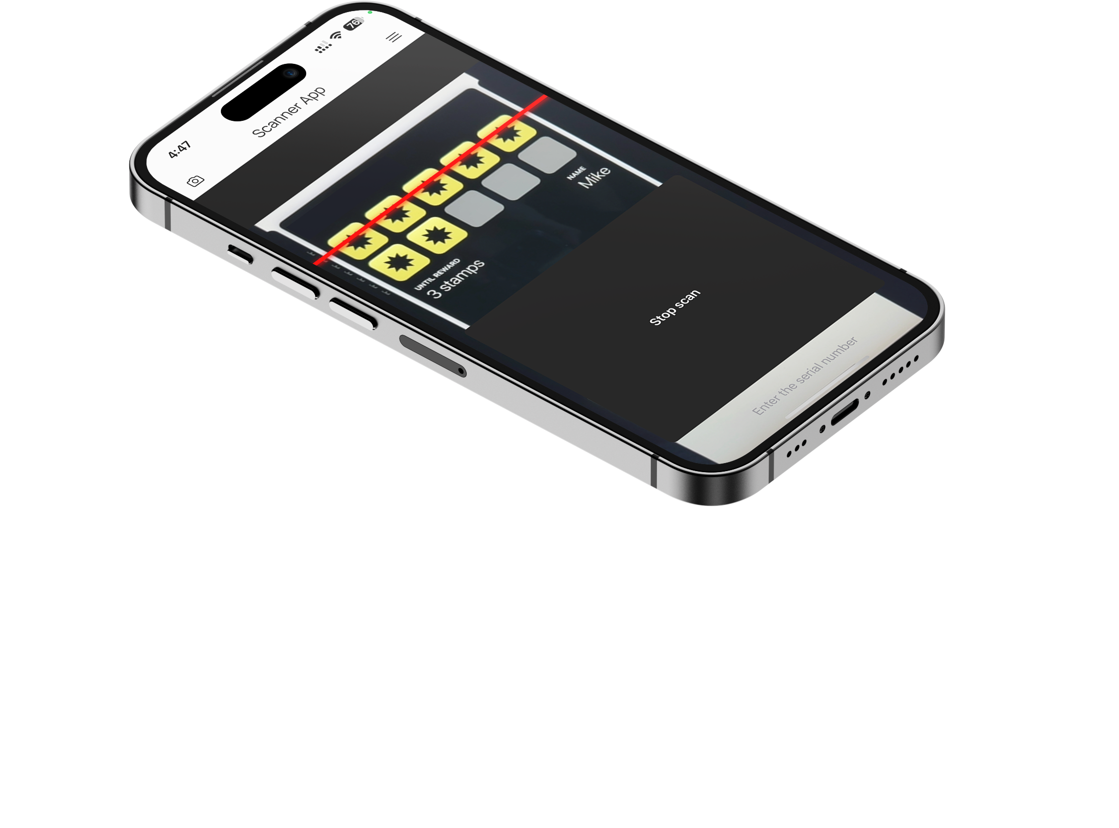 Una vez que haya creado una cuenta comercial, recibirá un enlace para instalar la aplicación de escáner de tarjeta gratuita. Simplemente comparta la aplicación con cada vendedor en su negocio y monitorea estadísticas compartidas